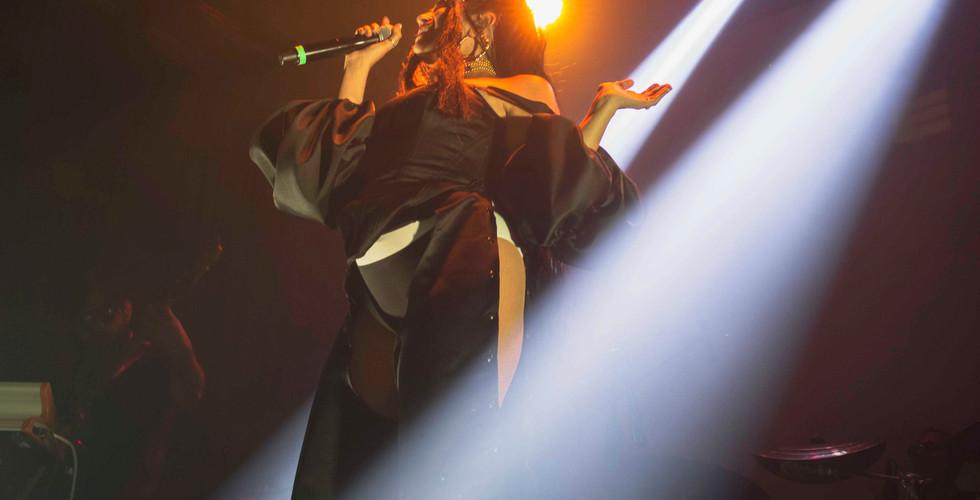 Inició su presentación con “Coloréame”, una de las tantas canciones que fusionan el Soul, Neo-Soul, R&B, Pop y Funk pero le da un toque especial su bellísima voz. Es un poco inusual que las chicas experimenten con ritmos y estilos, pero eso demuestra lo poderosas que llegan a ser en la industria musical. En su setlist, incluyó temas como “Aire”, “Sola”, “Nubes”, entre otros; nos sorprendió con un pequeño palomazo en un teclado y como era de esperarse, Sofía subió al escenario con ella para echarse su canción dueto. Al final de todo, no faltó el fan que le aventó su Dr. Simi como tradición.