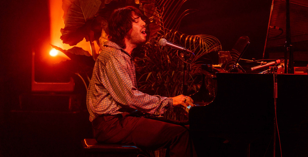 Llegando el anhelado momento, saltó Mateo Sujatovich al escenario, el público lo recibió entre aplausos y sin decir una palabra, se postró ante el piano, dando comienzo al recital. Mientras tanto, una indómita luz azafranada iba envolviendo al cantante y a su instrumento, quienes comenzaban su complicidad al hacer sonar los primeros acordes del tema Disfraz.